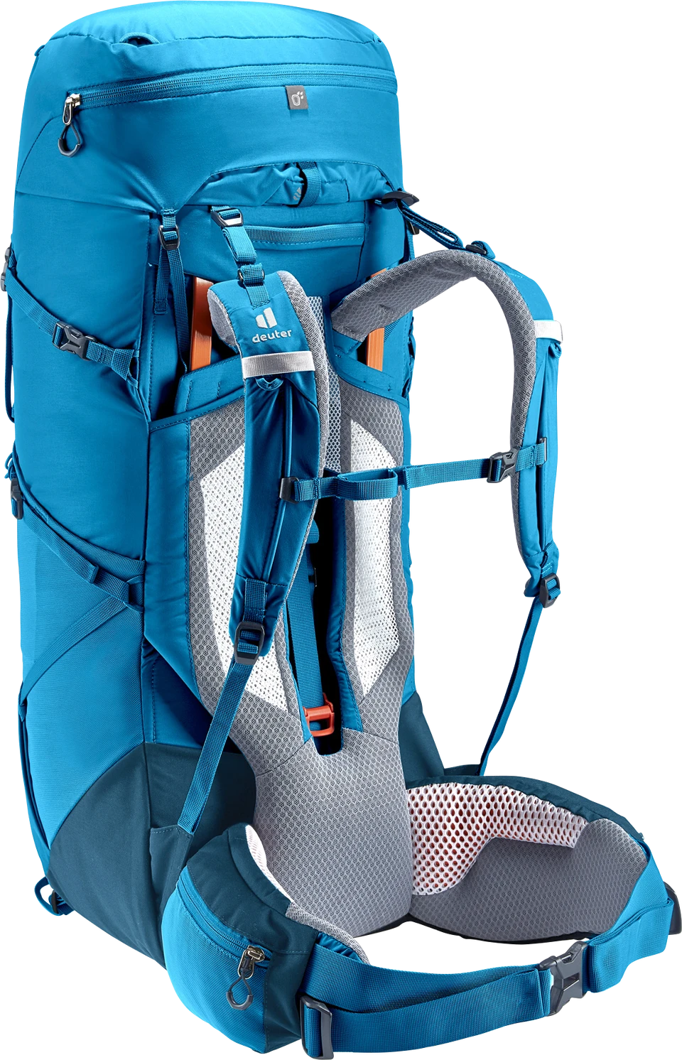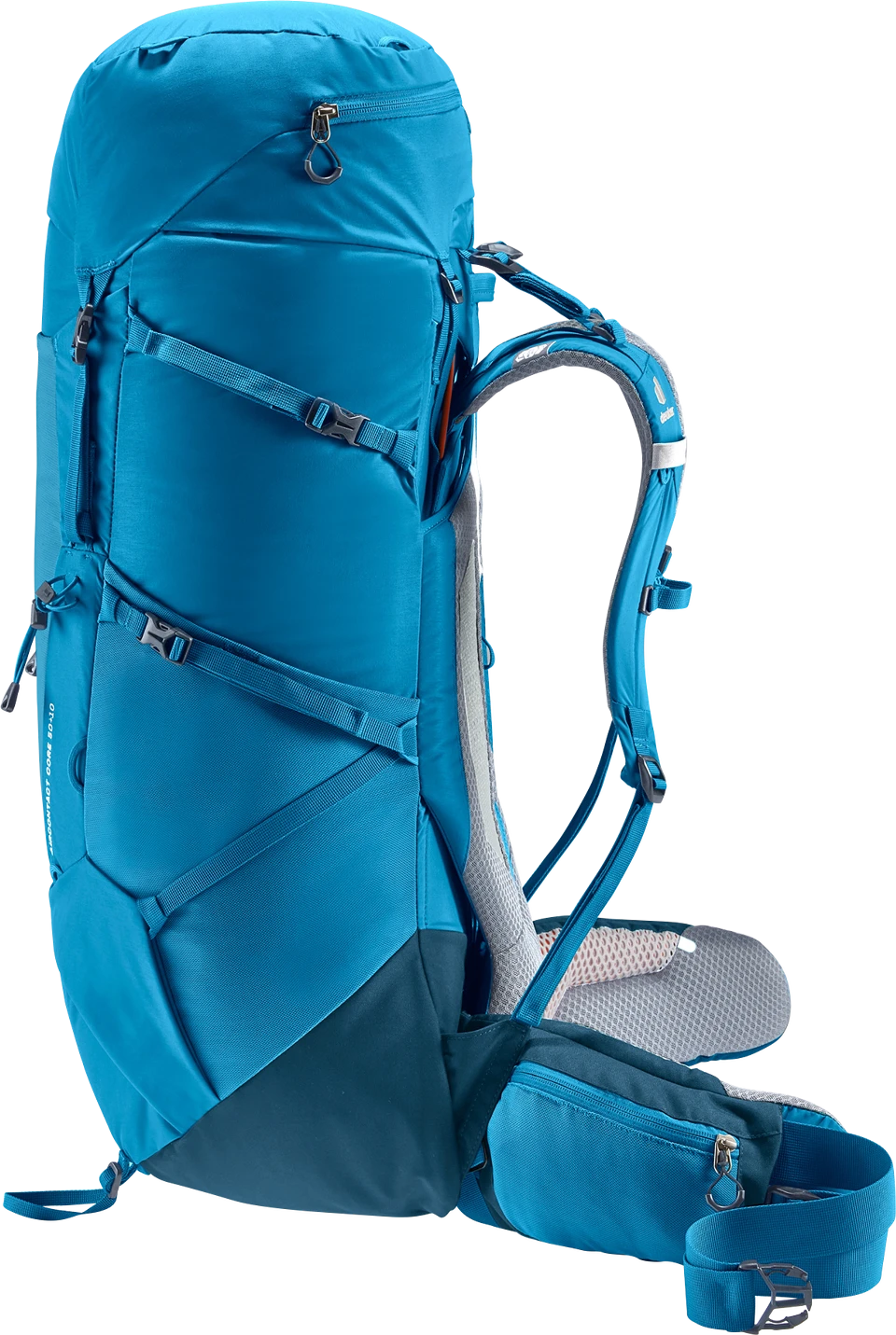 Komfortables Multi-Talent dank abnehmbarer Kompressionsriemen, die je nach Einsatz und Ausrüstung so modifiziert werden, dass unterschiedlichste Anbringungen von Gegenständen möglich sind. Der Tragekomfort wird durch das Aircontact Rückensystem mit Air Spacer Mesh und großem Belüftungskanal, die ergonomischen ActiveFit Schulterträger und den verstellbaren Brustgurt sichergestellt. Für eine optimale Lastverteilung und -kontrolle auf langen Strecken sorgen der Y-Rahmen, die beweglichen, passgenauen Hüftflossen und das ergonomische, trapezförmige Lumbalpad.